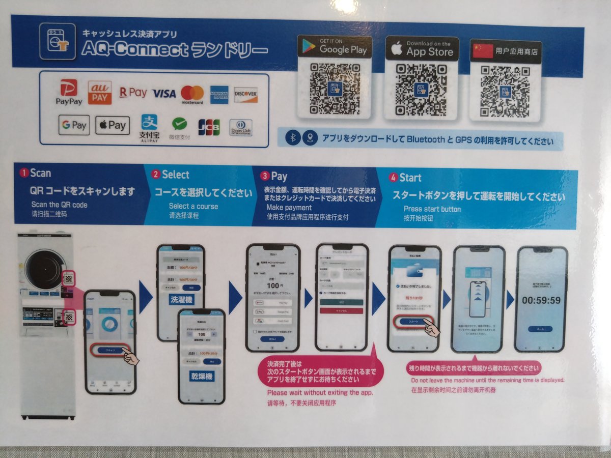 コインランドリー(柔軟剤入り洗剤)1回500円・乾燥機20分1回100円