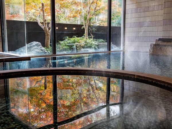 【紅葉シーズンの大浴場】庭園露天風呂で四季折々の風景をお楽しみください