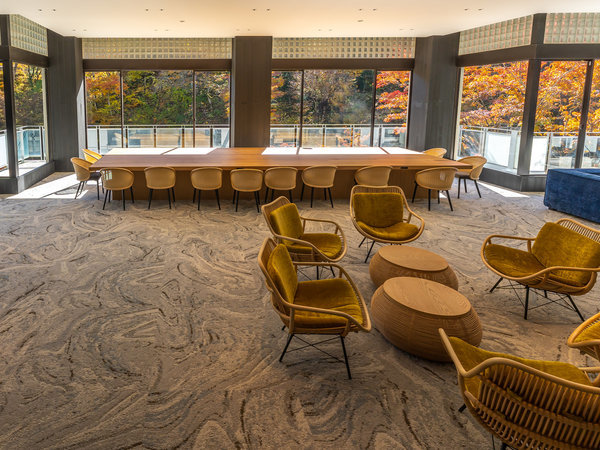 【ロビーラウンジ】大きなガラス窓で季節の移ろいを映し出す開放感あるロビーラウンジ