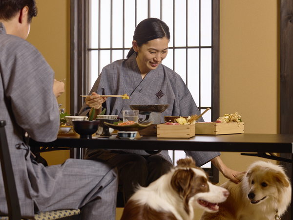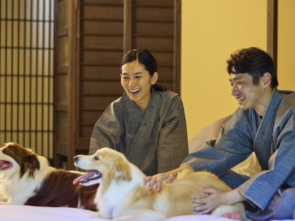 全室ベッドで添い寝可能。大切な愛犬と温泉宿で心安らぐひと時を。