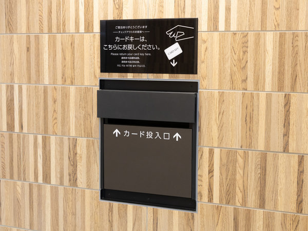1階にはチェックアウトボックスがございますので、出発の際にはカードキーをこちらにお入れください。