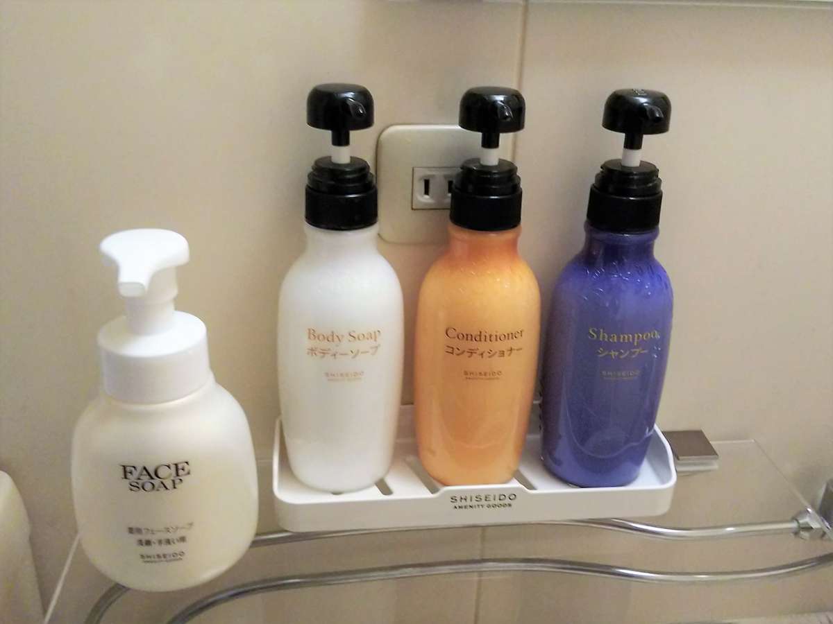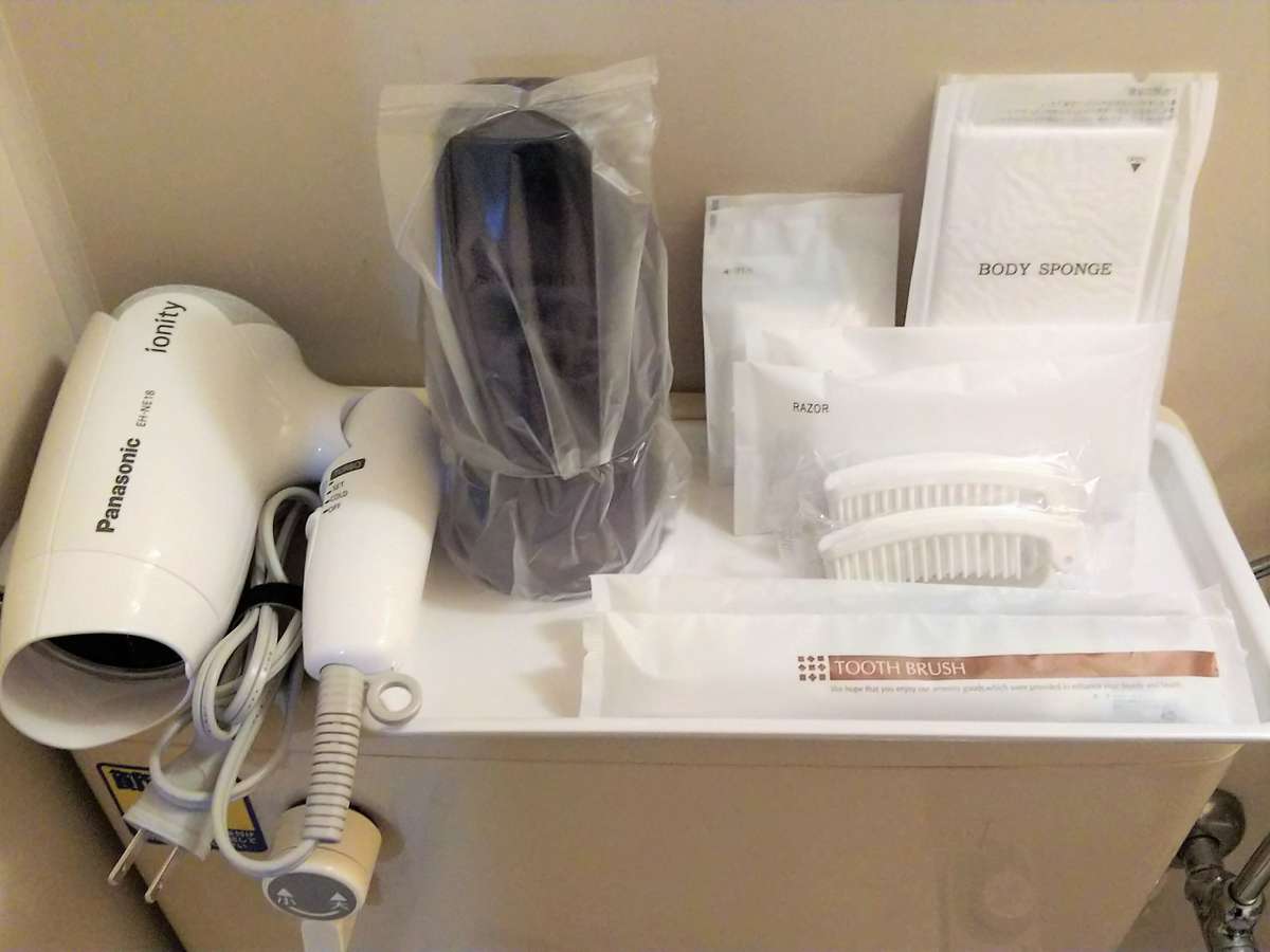 ○ ハンドタオル ○ ボディソープ ○ ドライヤー ○ 温水洗浄トイレ ○ 歯ブラシ・歯磨き粉 × 石けん ○ 羽毛布団 ○ くし・ブラシ ○ バスタオル × 浴衣 ○ 髭剃り ○ シャンプー