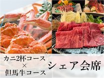 【冬のシェア会席】絶品!カニ2杯と但馬牛を贅沢に堪能!〜カニ2杯コースと但馬牛コースを二人でシェア〜