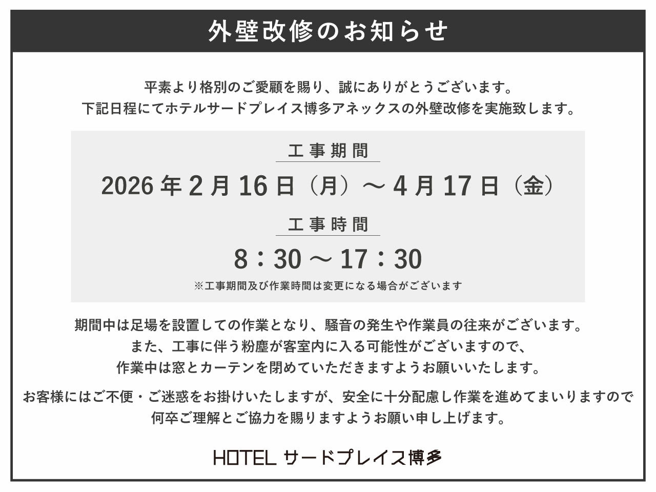 「ホテルサードプレイス博多」としてリブランド&アネックス(別館)がリニューアルオープン。 |