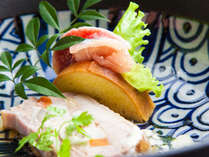 くぬぎコース:地鶏と根菜の田舎風パテブリオッシュを添えて(一例)