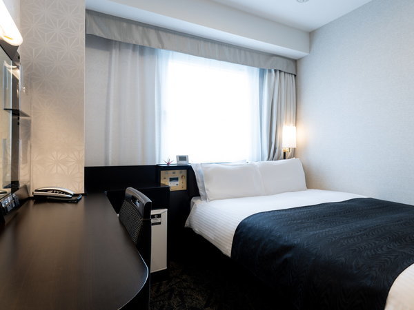 ダブルルーム【全室禁煙】:広さ11u/ベッド1台(幅140cm、長さ195cm)/ベッド下収納あり