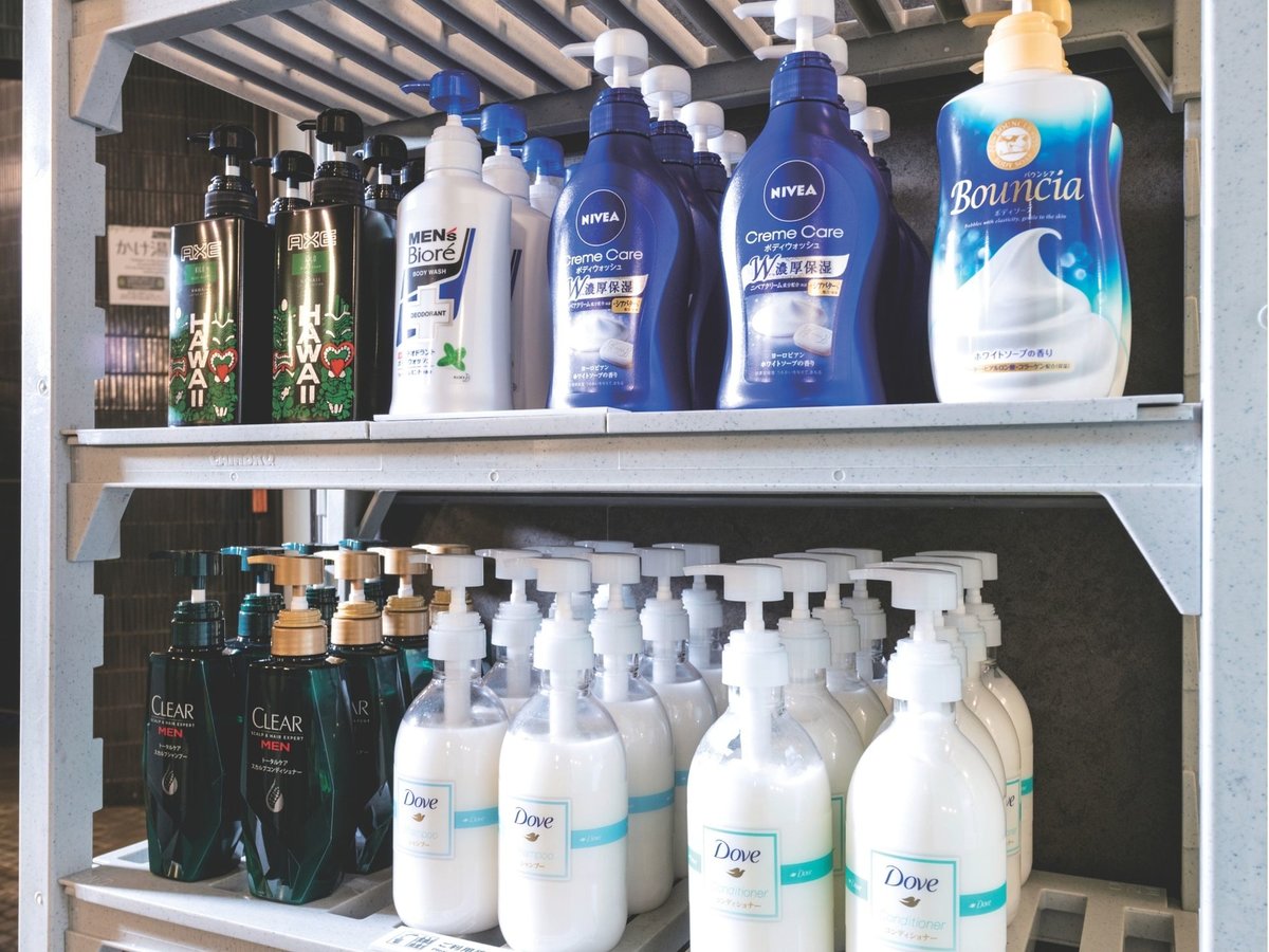 ○ ハンドタオル ○ ボディソープ ○ ドライヤー ○ 温水洗浄トイレ ○ 歯ブラシ・歯磨き粉 × 石けん ○ 羽毛布団 ○ くし・ブラシ ○ バスタオル ○ 浴衣 ○ 髭剃り ○ シャンプー