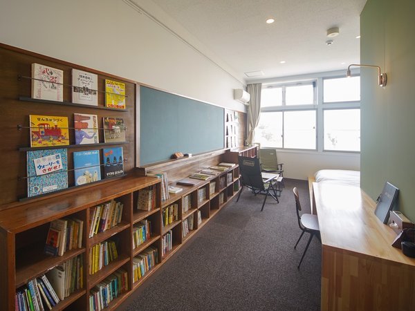 【図書室】客室にはたくさんの本が並んでいます。リラックスチェアでゆったり読書をお楽しみください♪
