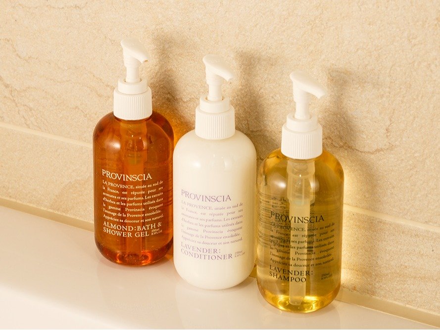 ○ ハンドタオル ○ ボディソープ ○ ドライヤー ○ 温水洗浄トイレ ○ 歯ブラシ・歯磨き粉 ○ 石けん ○ 羽毛布団 ○ くし・ブラシ ○ バスタオル × 浴衣 ○ 髭剃り ○ シャンプー