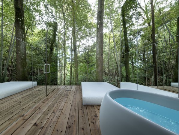 森の中、ふたりの世界。約5500坪の敷地に全11の露天風呂付離れ客室。温泉はトロトロの純重曹泉。お食事は五感で愉しむ佐賀の食材を使った創作会席。別棟の貸切サウナでは全身で自然を感じる体験を(要予約)。 |