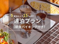 【連泊ECOプラン|朝食バイキング付き】5連泊以上で15%OFF!日替わりの朝食で出張利用に最適♪