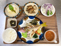 ・<夕食一例>海の幸たっぷりの夕食。野菜たっぷりのスープもお召し上がりください