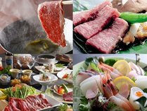 但馬牛会席例:但馬牛しゃぶしゃぶ、但馬牛陶板焼き、鮮魚など写真はイメージです。