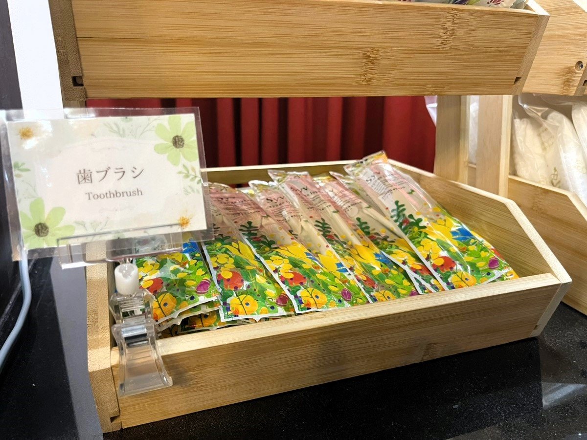 ○ ハンドタオル ○ ボディソープ ○ ドライヤー ○ 温水洗浄トイレ ○ 歯ブラシ・歯磨き粉 × 石けん ○ 羽毛布団 ○ くし・ブラシ ○ バスタオル ○ 浴衣 ○ 髭剃り ○ シャンプー