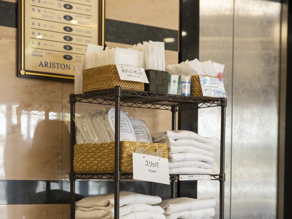 ○ ハンドタオル ○ ボディソープ ○ ドライヤー ○ 温水洗浄トイレ ○ 歯ブラシ・歯磨き粉 × 石けん ○ 羽毛布団 ○ くし・ブラシ ○ バスタオル × 浴衣 ○ 髭剃り ○ シャンプー