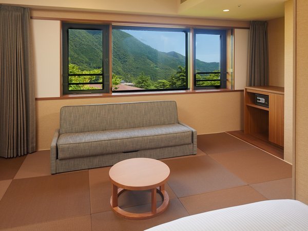 客室から見た、箱根の山々