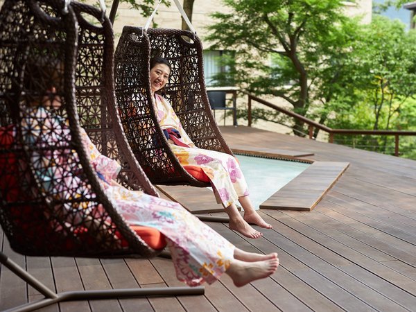 ライブラリーやスパラウンジ、ナカニワの足湯。思い思いの滞在を。