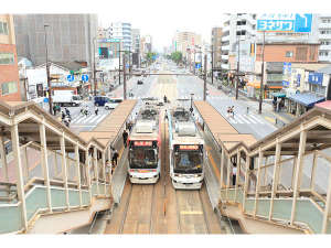 【市電「新水前寺駅前」電停】当ホテルより徒歩3分!。JR「新水前寺駅」と直結! |