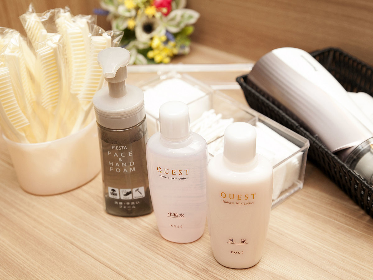 ○ ハンドタオル ○ ボディソープ ○ ドライヤー ○ 温水洗浄トイレ ○ 歯ブラシ・歯磨き粉 × 石けん ○ 羽毛布団 ○ くし・ブラシ ○ バスタオル ○ 浴衣 ○ 髭剃り ○ シャンプー