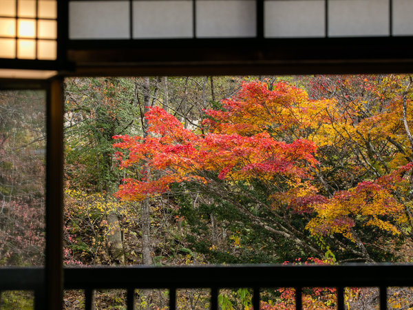 紅葉も深山と湯西川清流沿いの男性露天風呂