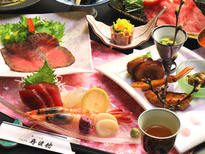 #夕食一例_特選プラン。料理長自慢の和会席は旬の素材を使い、季節の移ろいが感じるお料理。 |