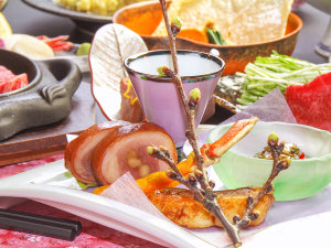#夕食一例_特選プラン。料理長自慢の和会席は旬の素材を使い、季節の移ろいを感じるお料理。 |