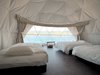 ドームテント。セミダブルのベッドが3つ、エキストラベッドが1つ。最大4名様までご宿泊いただけます。