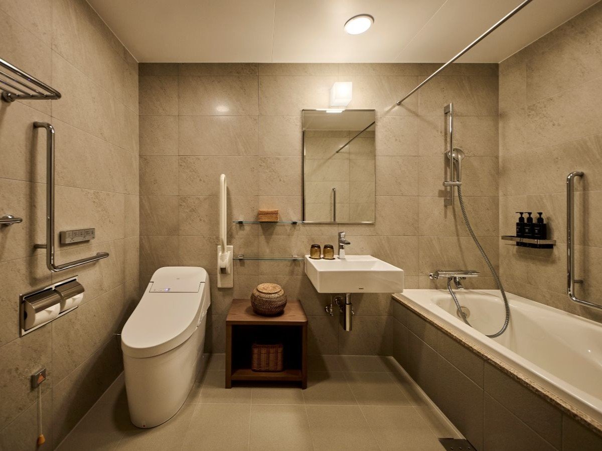 ○ ハンドタオル ○ ボディソープ ○ ドライヤー ○ 温水洗浄トイレ ○ 歯ブラシ・歯磨き粉 × 石けん ○ 羽毛布団 ○ くし・ブラシ ○ バスタオル × 浴衣 ○ 髭剃り ○ バストイレ別 ○ シャンプー
