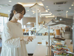 自社農場の平飼い卵や地元の食材など、安心素材を活かした健康志向ビュッフェ。