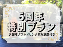 【5周年特別企画】基本料金のままオールインクルーシブプラン<夕食時ソフトドリンク飲み放題>
