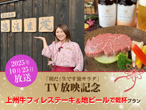 【旅サラダ放映記念 】上州牛フィレステーキ&地ビールで乾杯プラン