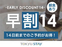 〇【早期割14】14日前までの予約がお得な早期割プラン!全室洗濯乾燥機付【2名〜】(朝食付き)