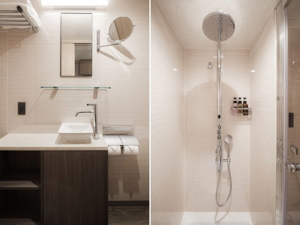 多機能シャワータワー完備◎バスタブはありませんが、短時間で心地よく温まれます。