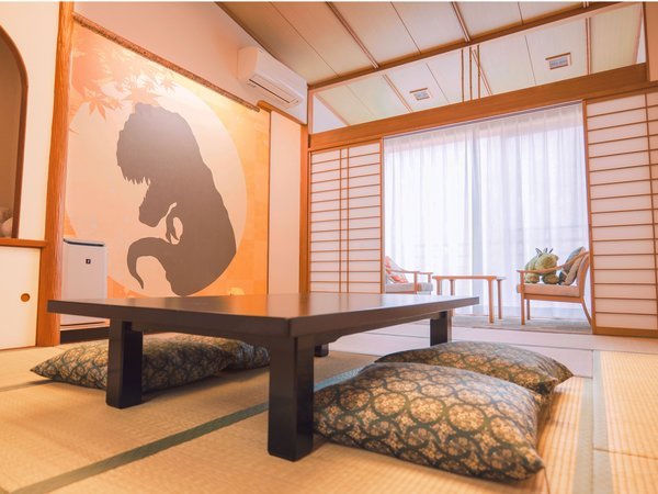 【新館・和洋室】落ち着く和洋室にブラキオサウルスの壁紙で遊び心をプラスしました♪
