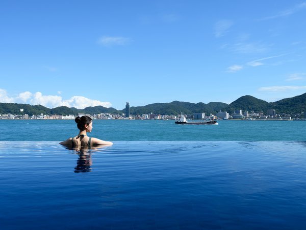 絶景を望む全室海峡ビューの客室や潮風が心地よいテラス。ふぐと海鮮が彩る美食を堪能し、インフィニティプールで幻想的な夜景に浸る。海峡で心ほどける優雅なひとときをお過ごしください。 |