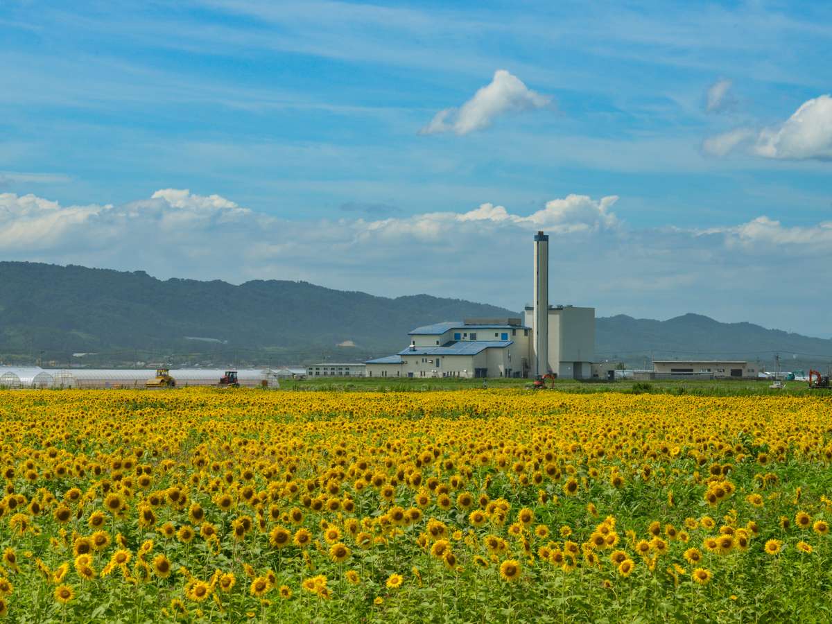 【山本町のひまわり畑】夏にはやまもとひまわり祭りが行われます。