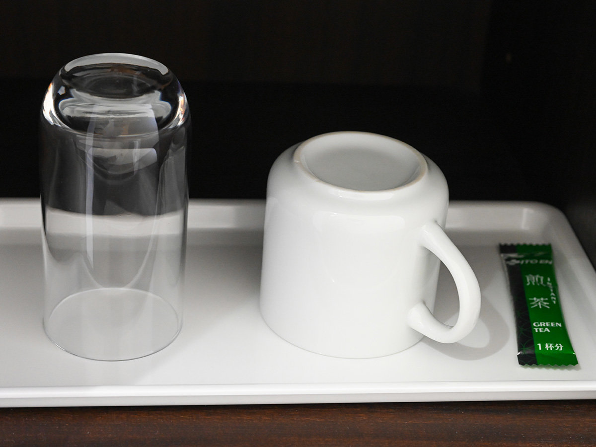 【客室備品】お部屋にはグラス、マグカップ、お茶(粉末)をご用意♪