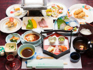 こだわりの出汁、厳選した旬の素材すべてを尽くしたお料理が並ぶ当館自慢の会席料理をご用意。