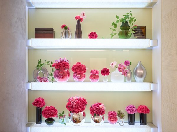 【ロビー】ピンクを基調とした装飾はスタッフからも大人気!