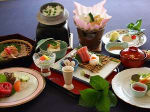 御食事は、その季節毎の創作和食会席で準備致しますし、お泊り戴くお部屋などの諸条件も一緒、フラットです。