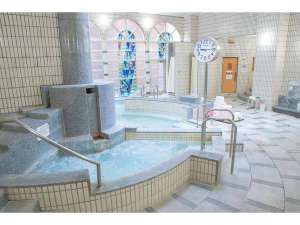 温泉大浴場リバティスパ。数種類の浴槽とサウナ完備 |