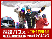【東京駅⇔ホテル往復バス&リフト1日券付】思う存分遊んだ後は雪見露天と和洋中バイキング満喫♪