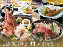 【人気No1】 プリプリ食感!朝獲れ地魚姿造り × 長州ながと和牛すき焼き ≪大満喫トレトレプラン≫