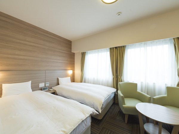 ◆ツインルーム シモンズ社製 ベッドサイズ100×200cmが2台 16.45平米 テレビ32インチ