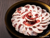 冬季限定ツキノワグマの料理 冬眠前の最も脂ののった木曽のツキノワグマの極上スライス