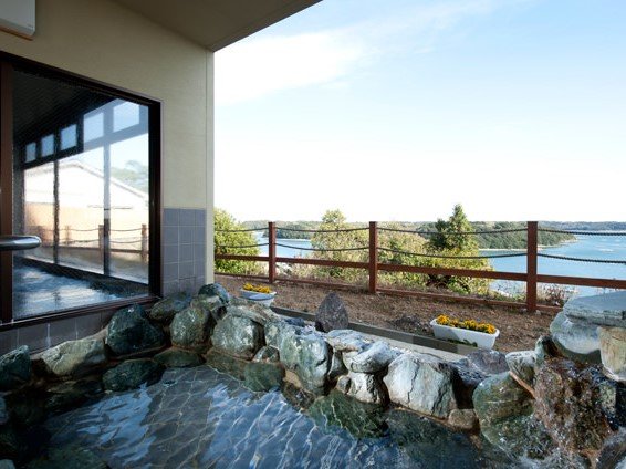 【貸切露天風呂】昼間は椀を行きかう船や牡蠣筏を一望の貸切露天風呂