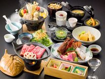 【選べる鍋】【信州豚蕎麦つゆ鍋orブイヤベース鍋】+伊勢海老+信州牛+鮑とほうぼう宝楽蒸し最上級会席