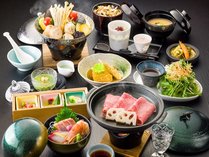 【選べる鍋】【信州豚蕎麦つゆ鍋orブイヤベース鍋】+信州牛+鮑とほうぼうの宝楽蒸しグレードアップ会席