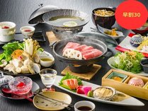 【早割30】お一人様1100円OFF【鮑・浅利と鶏の桜葉鍋・信州牛】春信州恵づくしグレードアップ会席