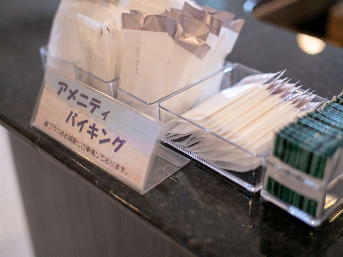 アメニティ類(カミソリ/ヘアブラシ/ボディスポンジ/コットンセット/ティーパック)はフロントにて無料でご提供いたします。